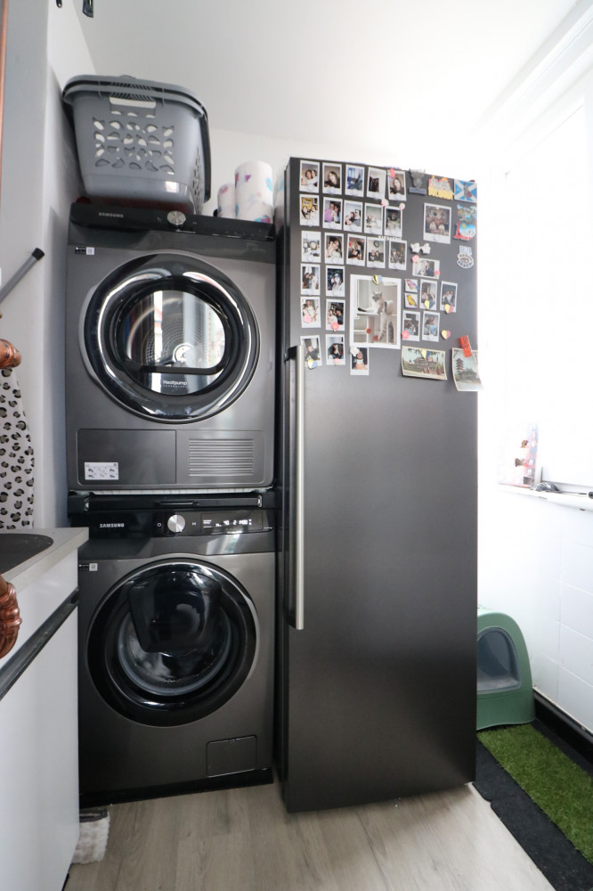 - débarras spacieux avec raccordement pour lave-linge et sèche-linge.