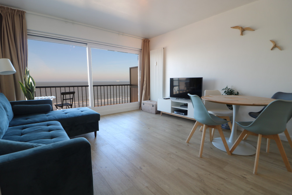 Studio rénové avec vue sur mer frontale situé au septième étage de la résidence Golfslag.