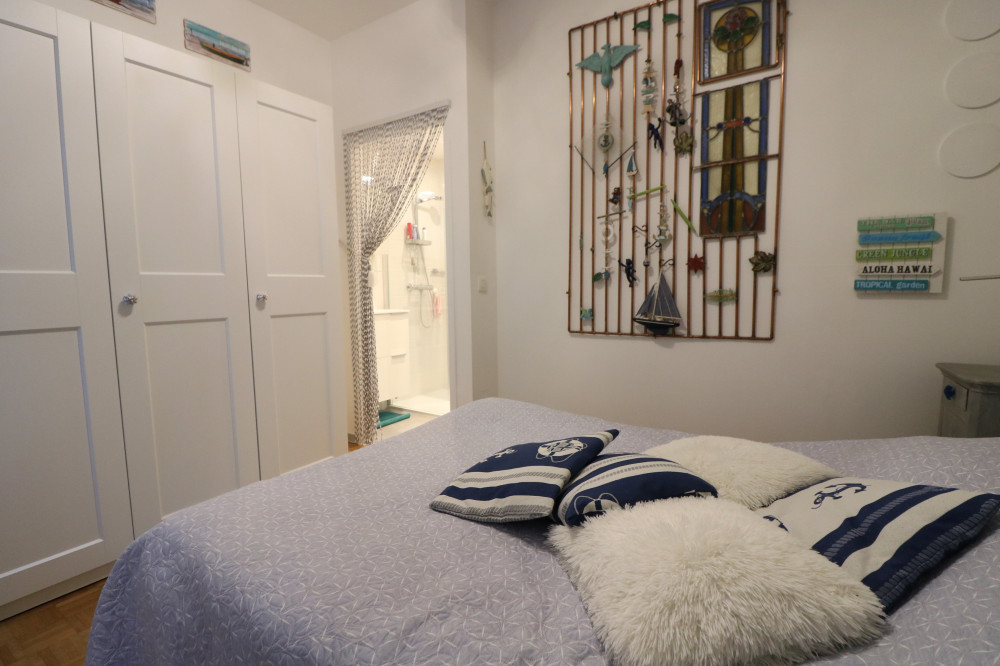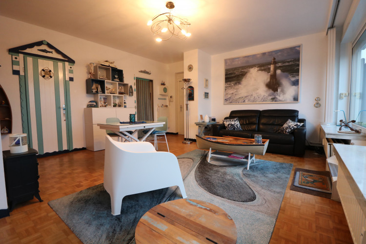 Cet appartement, à l'arrière de la Digue et à quelques pas du centre, se compose de :