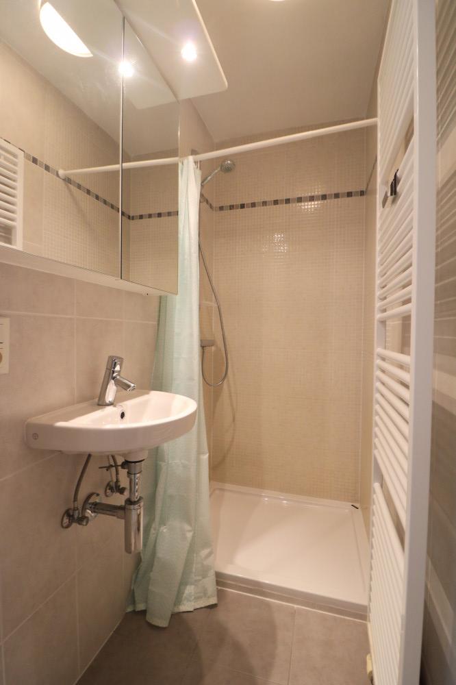 - 1 salle de bain avec douche et lavabo ;