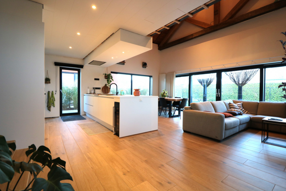 - très grand et lumineux espace de vie avec haut plafond et belle mezzanine (idéal comme espace bureau) ;