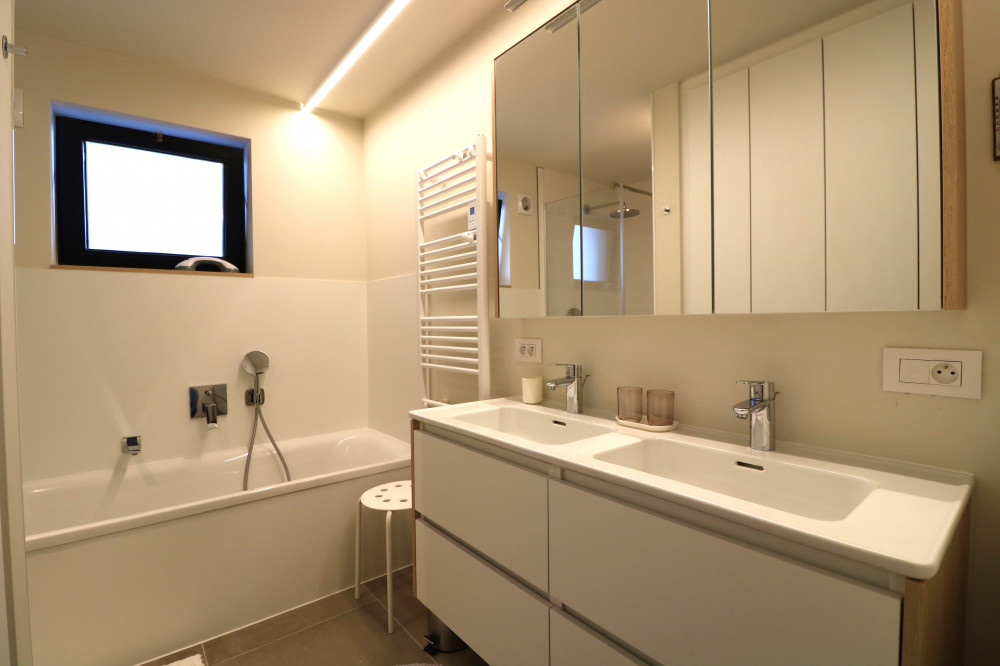 - salle de bain très spacieuse avec double lavabos, baignoire et douche à l'italienne séparée ;