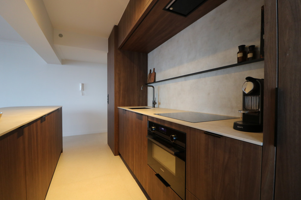 - open keuken met combi-oven, vaatwasser en koffiezet;