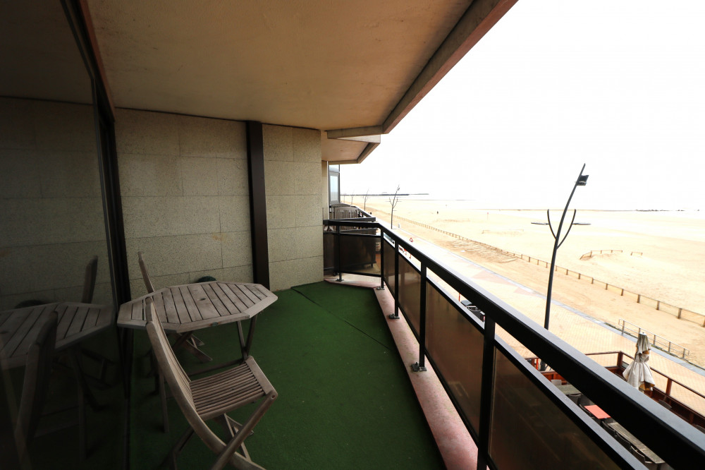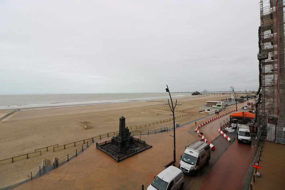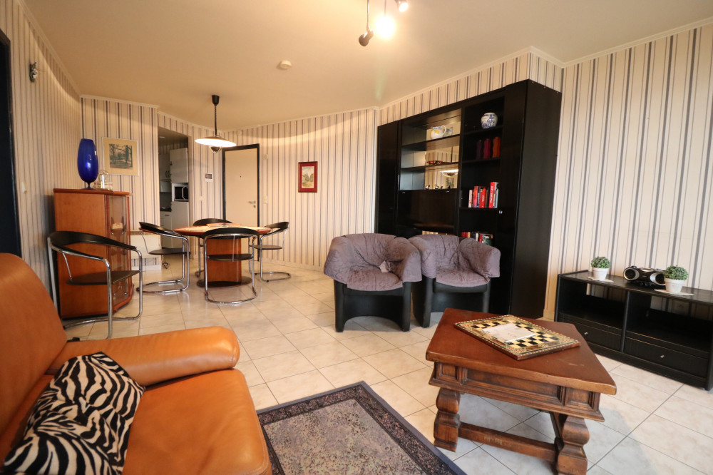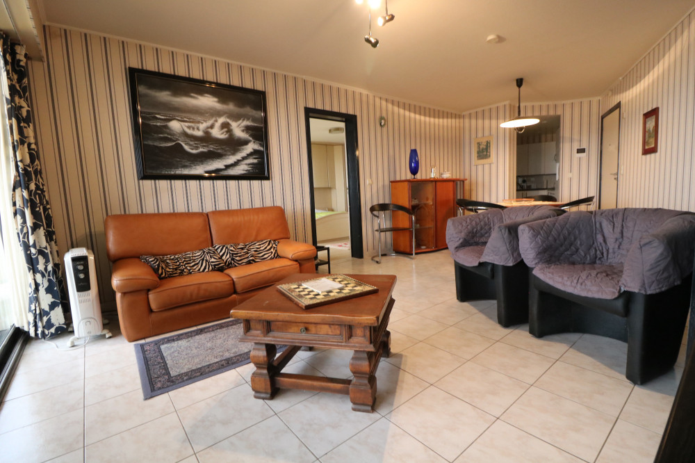 Gemeubileerd 1-slaapkamerappartement met groot terras en frontaal zeezicht op de Zeedijk van Blankenberge.