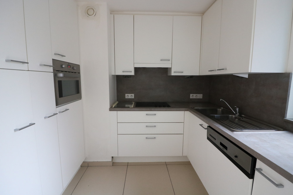 Ruim duplexappartement met 2 slaapkamers op de derde verdieping van de residentie La Couronne. Vanuit het appartement heeft u zijdelings zicht op zee en Leopoldpark.