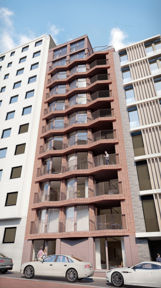 Dit hedendaags project met tijdloze architectuur bestaat uit 12 appartementen (1 appartement per verdieping). De appartementen kenmerken zich door 2 ruime slaapkamers, hoogwaardige afwerking en een ruim, goed georiënteerd terras met zeezicht.