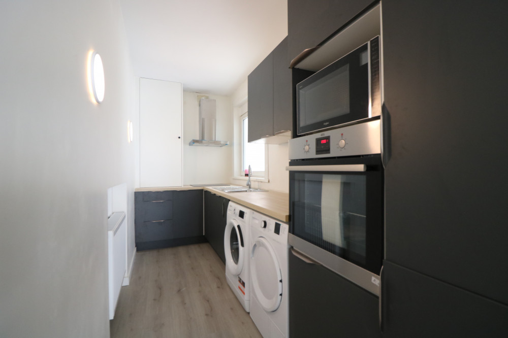 Recent volledig gerenoveerd éénslaapkamerappartement (70 m²) met lateraal zicht op de haven en de Zeedijk. Dit appartement bevindt zich op de 6e verdieping van de residentie Nominoë.
