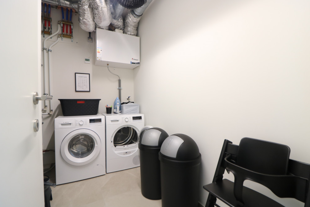 - grote berging met aansluiting voor wasmachine en droogkast.