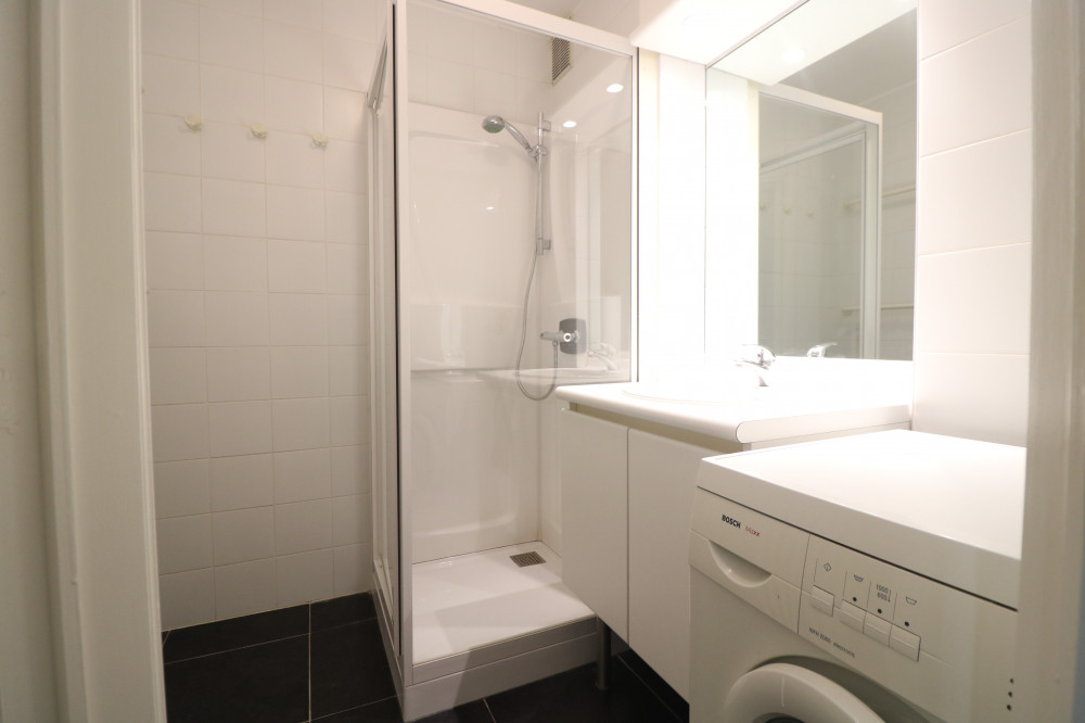 - badkamer met douche en wasmachine;