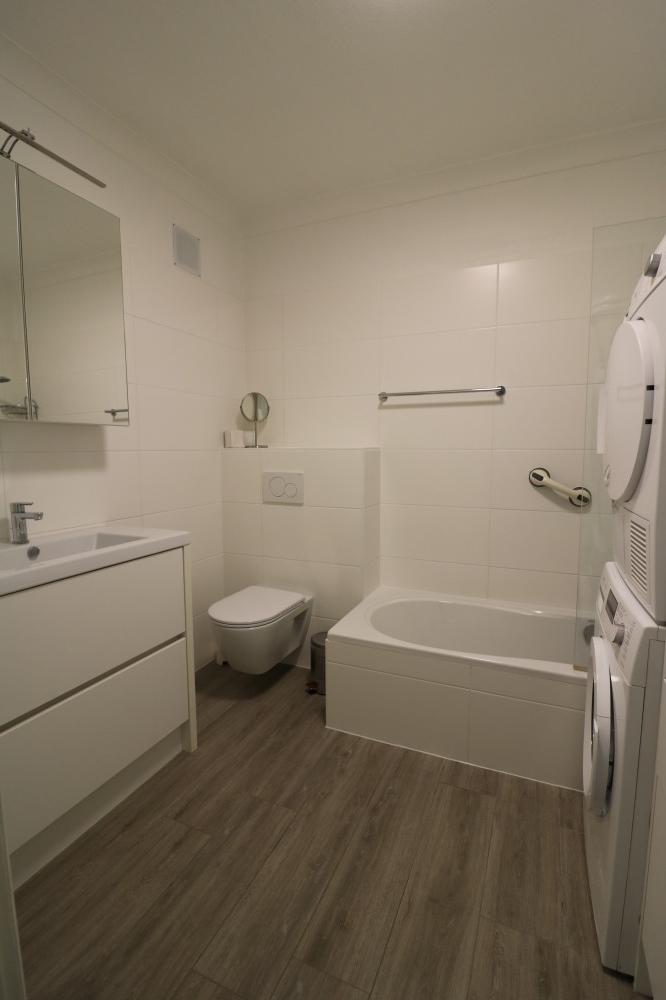 - nieuwe badkamer met bad, toilet, wasmachine en droogkast;