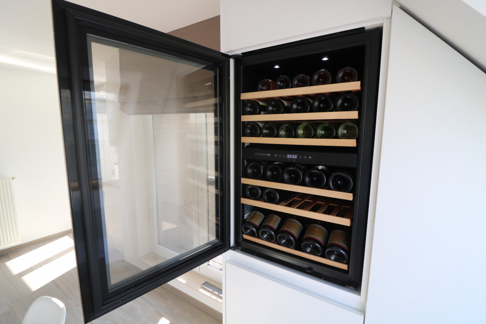 - open, volledig geïnstalleerde keuken met ingebouwde wijnfrigo;