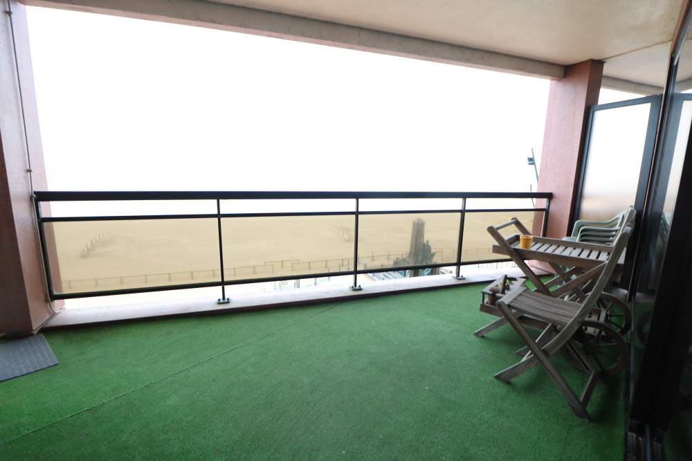 Gemeubileerd 1-slaapkamerappartement met groot terras en frontaal zeezicht op de Zeedijk van Blankenberge.