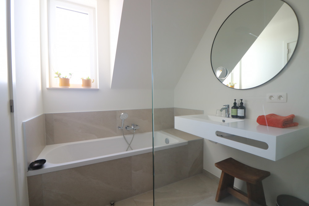 - 2 badkamers, waarvan één met inloopdouche en bad en één met inloopdouche;