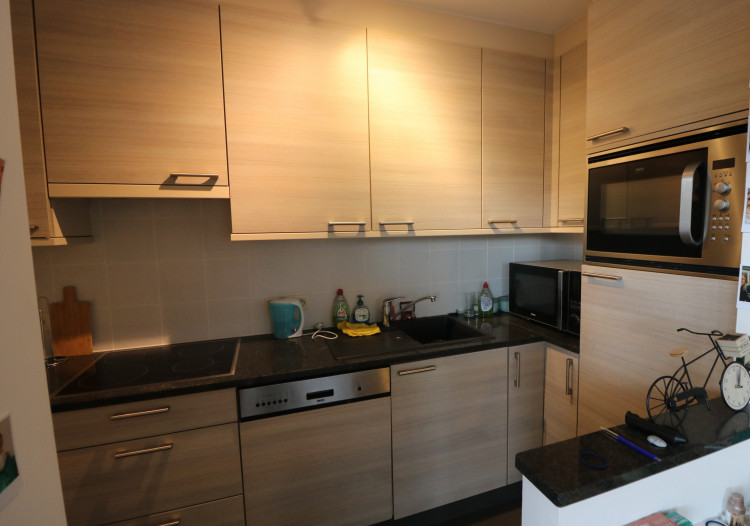 - open keuken met vaatwas, koelkast en oven;