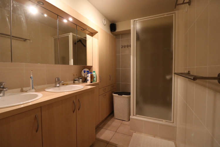 - badkamer met dubbele wastafel en douche;