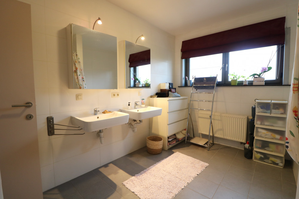 - grote badkamer met dubbele wastafel, ligbad, aparte douche en toilet;