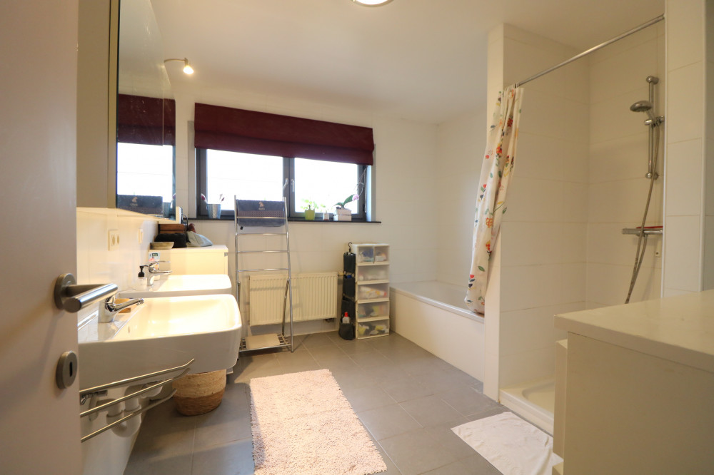 - grote badkamer met dubbele wastafel, ligbad, aparte douche en toilet;