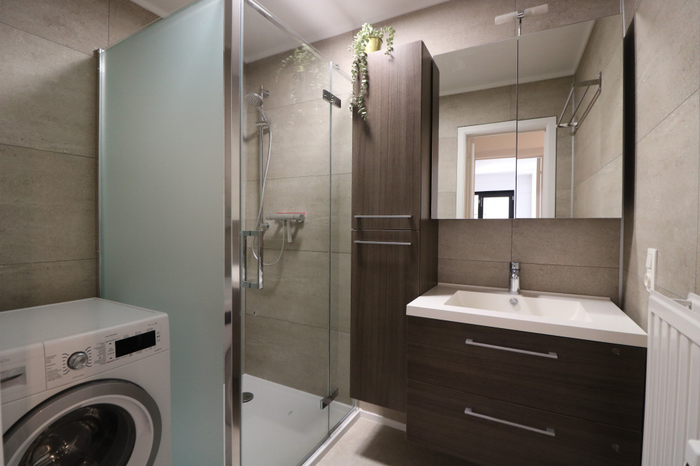 - badkamer met inloopdouche en wasmachine;