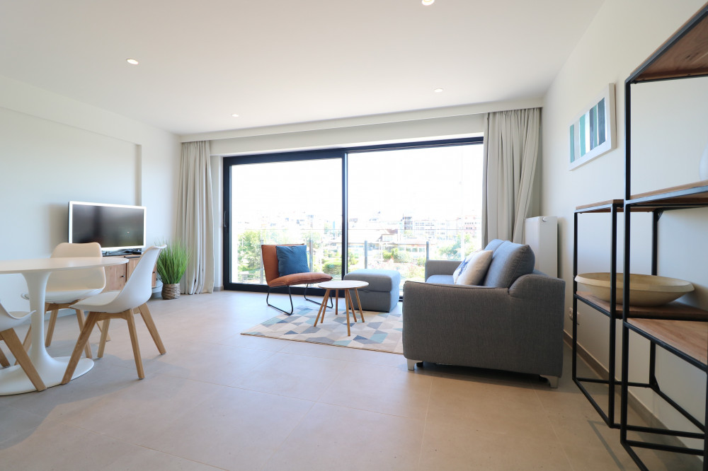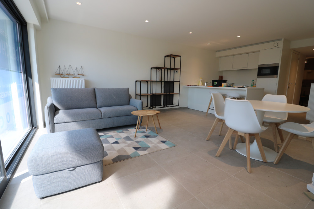 Nieuwbouwappartement met één slaapkamer en zonnig terras op de eerste verdieping van de residentie De Schover.